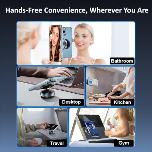 - Portable & Foldable Design – Compact, lightweight & easy to carry. Reposition anywhere — car, office, home, kitchen, gym, or even on wall tiles. Ideal travel-friendly phone stand.